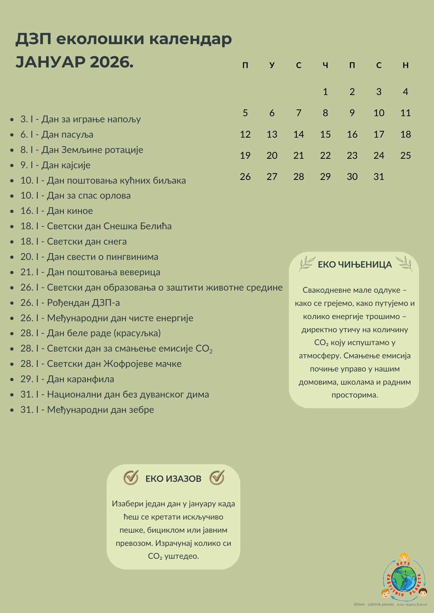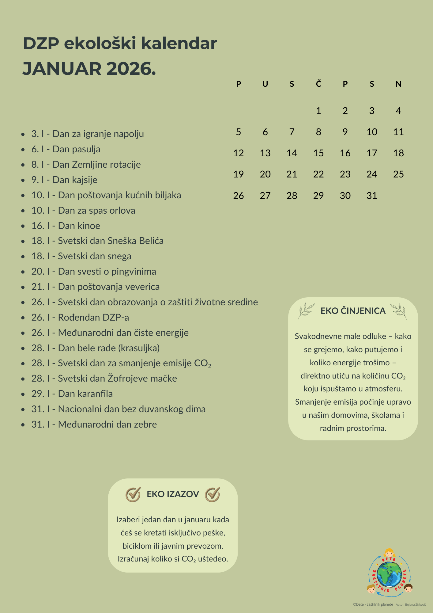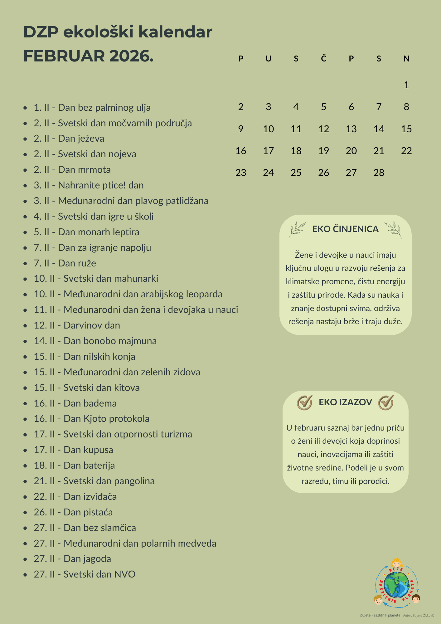 DZP Ekološki kalendar za 2026. godinu